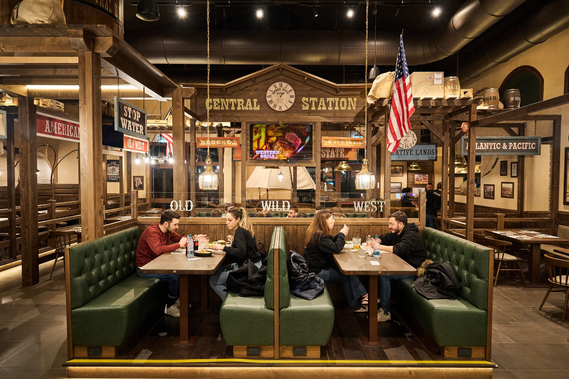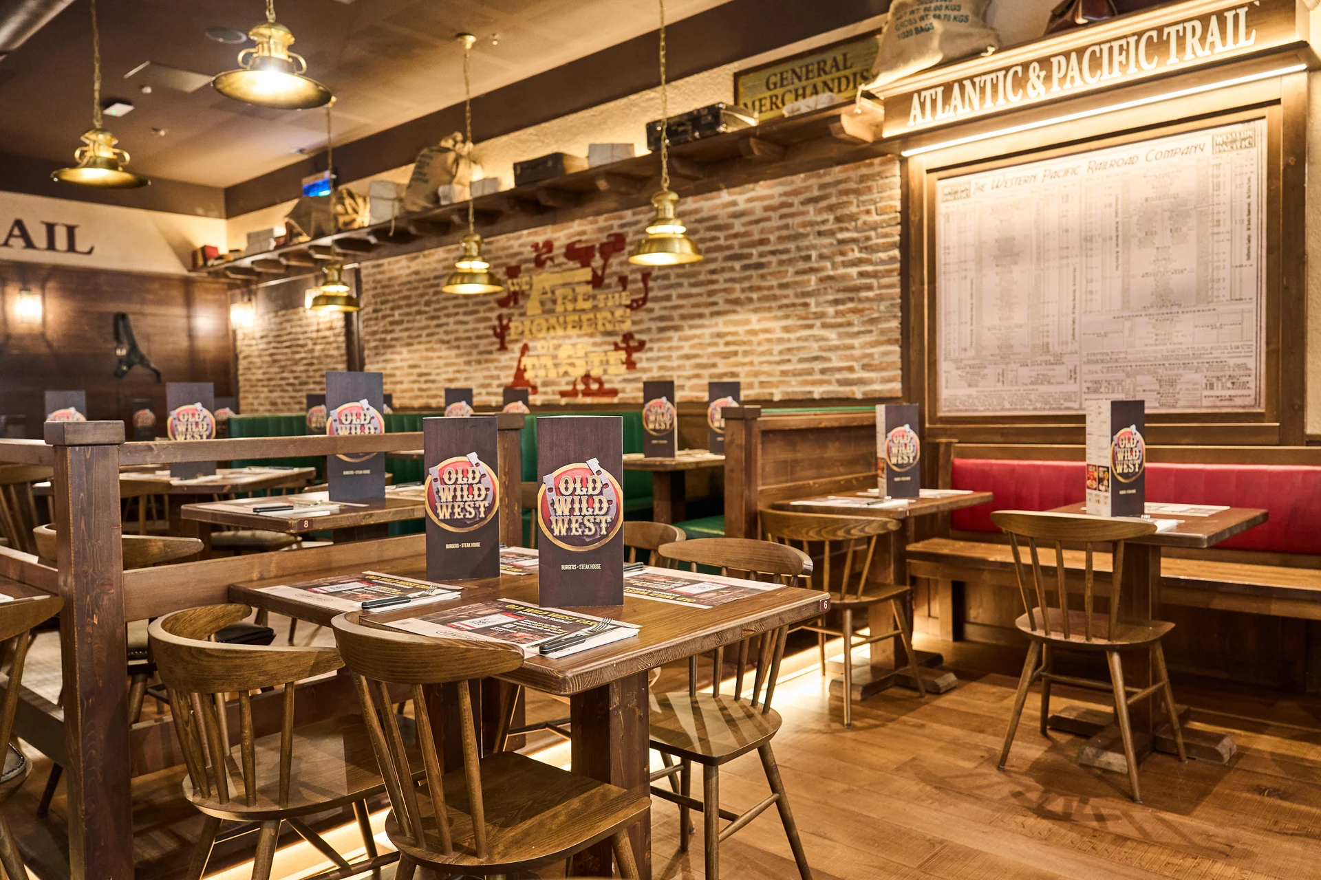 Old Wild West è un family restaurant, con un’offerta di hamburger, carni rosse e tex-mex, rinnovato oggi nel layout e nelle ambientazioni. È un format che accoglie un target molto trasversale e si adatta ad ogni situazione, dai contesti più urbani e contemporanei, a quelli più commerciali, ad alto flusso di clientela.